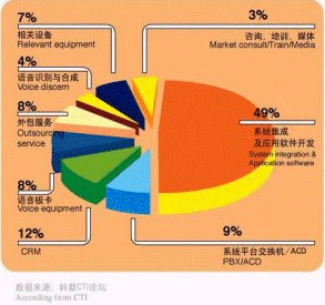 - 中國(guó)CRM市場(chǎng)正在快速增長(zhǎng),從事與呼叫中心有關(guān)產(chǎn)品、服務(wù)和運(yùn)營(yíng)方面的廠商數(shù)量約為620多家。其中,系統(tǒng)集成及應(yīng)用軟件開(kāi)發(fā)商的數(shù)量占有49%的比例,是呼叫中心從業(yè)廠商中最為主要的組成部分。