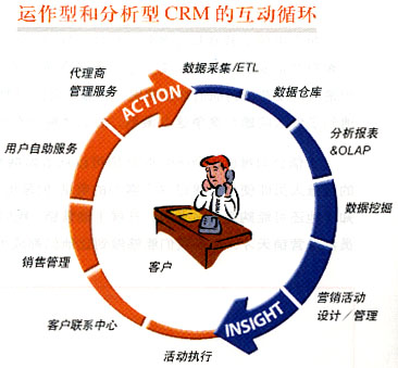 運作型CRM和分析型CRM不是孤立的模塊,他們之間是互動的,首尾相接關系。分析型CRM從客戶背景資料和消費數(shù)據(jù)經(jīng)過數(shù)據(jù)采集、數(shù)據(jù)倉庫、數(shù)據(jù)挖掘和分析而得出分析的結(jié)論。這些結(jié)論又被制定成為市場活動被運營型CRM通過客戶聯(lián)系中心、銷售管理、大客戶管理等模塊進行執(zhí)行。執(zhí)行的結(jié)果和反饋又重新被分析系統(tǒng)進行分析和評價形成一個循環(huán)過程。 亞信科技(中國)有限公司 地 址:北京海淀區(qū)中關村南大街6號中電信息大廈三、四層 |