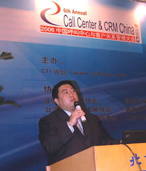 。。2006年4月3日至5日,2006中國呼叫中心與客戶關(guān)系管理大會(huì)在北京國際會(huì)議中心隆重召開,以下是主題演講的相關(guān)圖片報(bào)道: