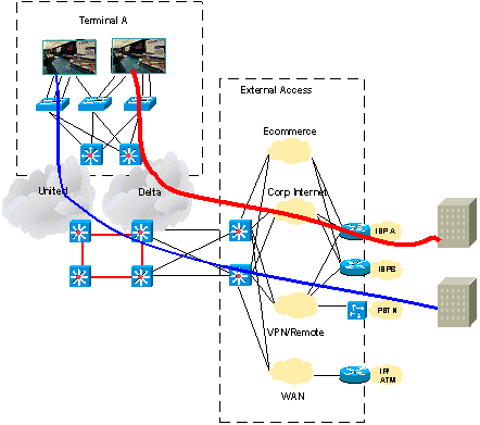 思科智能機(jī)場(chǎng)解決方案采用了多種聯(lián)網(wǎng)技術(shù)和拓?fù)浣Y(jié)構(gòu):電子商務(wù)基礎(chǔ)設(shè)施(物理層)、智能網(wǎng)絡(luò)服務(wù)和大量的可行設(shè)計(jì)和架構(gòu)。思科機(jī)場(chǎng)網(wǎng)絡(luò)架構(gòu)由經(jīng)過(guò)思科企業(yè)解決方案設(shè)計(jì)測(cè)試實(shí)驗(yàn)室預(yù)測(cè)試的成熟網(wǎng)絡(luò)部件組成。這些經(jīng)過(guò)測(cè)試的設(shè)計(jì)則是基于經(jīng)由構(gòu)建全球最大的網(wǎng)絡(luò)而得出的最佳實(shí)踐。測(cè)試結(jié)果請(qǐng)參見(jiàn)"解決方案參考設(shè)計(jì)指南