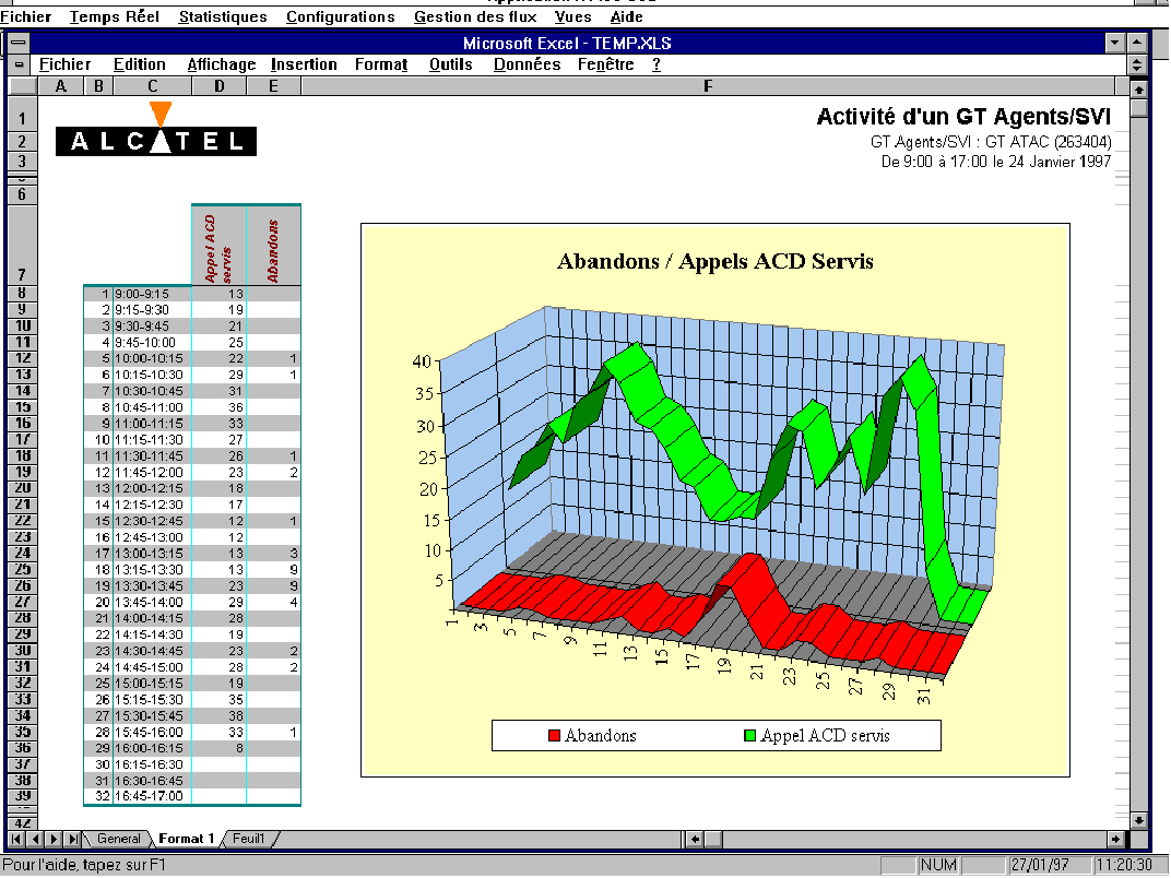 除了實時統(tǒng)計,A4400 CCS 用"Excel" 以擴(kuò)展式清單和圖表形式提供詳細(xì)統(tǒng)計信息。而且,詳細(xì)的通話呼叫水平清單能下載到您的數(shù)據(jù)庫(以太網(wǎng)TCP/IP 協(xié)議的FTP)根據(jù)用戶的需要可作后期處理。