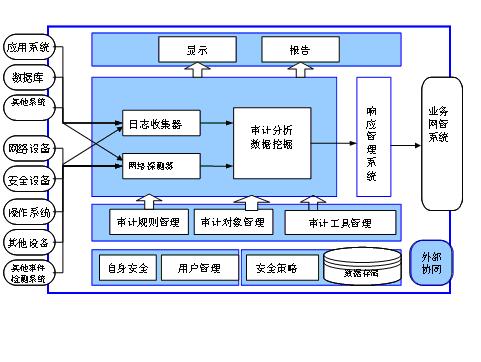 圍繞《薩班斯法案》第404條款的基本要求,結合運營商的業(yè)務支撐系統(tǒng)運維特點,面向業(yè)務系統(tǒng)的安全審計系統(tǒng)一般應具備以下功能: