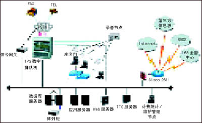 本項(xiàng)目采用新太科技交互式電話會(huì)議系統(tǒng)2.0版,系統(tǒng)各組成部分見圖1。前端接入設(shè)備采用SUNTEK-IPS數(shù)字排隊(duì)機(jī),負(fù)責(zé)多方電話會(huì)議用戶和其他業(yè)務(wù)用戶接入的交換排隊(duì)、自動(dòng)語音資源提供、座席服務(wù)資源提供、錄音、計(jì)費(fèi)等等。SUNTEK-IPS數(shù)字排隊(duì)機(jī)是新太科技最新一代軟交換平臺(tái),是整個(gè)系統(tǒng)平臺(tái)的核心。它綜合了新太科技?xì)v代平臺(tái)的優(yōu)勢(shì),采用世界上最先進(jìn)的軟交換(包交換)技術(shù)和CompactPCI技術(shù),支持主控CPU卡冗余和熱拔插,擁有更大規(guī)模的交換系統(tǒng)總線(CompactPCI的CTBus總線共有4096個(gè)時(shí)隙,理論上,單個(gè)機(jī)框可以支持4k×4k的交換)。SUNTEK-IPS數(shù)字排隊(duì)機(jī)基于自主開發(fā),擁有自主產(chǎn)權(quán),保證了極高的性價(jià)比,已經(jīng)通過了信息產(chǎn)業(yè)部入網(wǎng)認(rèn)證。SUNTEK-IPS數(shù)字排隊(duì)機(jī)現(xiàn)已在十多個(gè)省成功開展全省業(yè)務(wù)的事實(shí),證明了它具備技術(shù)先進(jìn)、可靠性強(qiáng)等特點(diǎn)。