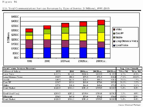 電信市場(chǎng)不是一個(gè)孤立的市場(chǎng),而是由電信服務(wù)和電信制造兩個(gè)緊密相連的市場(chǎng)組成的。電信制造業(yè)不斷進(jìn)行研發(fā)創(chuàng)新,為電信服務(wù)業(yè)提供新的業(yè)務(wù);而電信服務(wù)也利用電信制造業(yè)的新技術(shù),并把這些服務(wù)最終提供給商業(yè)和普通消費(fèi)者兩類(lèi)用戶(hù)?梢哉f(shuō),電信制造業(yè)的發(fā)展在很大程度上是由電信服務(wù)業(yè)決定的。要了解電信制造市場(chǎng)的將來(lái),不得不從電信服務(wù)市場(chǎng)的變化談起!