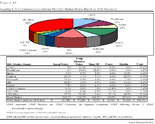 。∑髽I(yè)戰(zhàn)略:在商業(yè)用戶方面,AT&T一邊加緊完善自己的全球接入網(wǎng)絡(luò),如在上海設(shè)立分公司;一邊積極提高自己向商業(yè)用戶提供全面解決方案的能力,AT&T公司新成立的AT&T解決方案部門可以被稱做電信領(lǐng)域的IBM全球服務(wù)公司,在很短的時(shí)間內(nèi),AT&T解決方案部門已經(jīng)發(fā)展到7500人,年?duì)I業(yè)額超過50億美元,同時(shí)能為商業(yè)用戶在全球范圍提供全面的電信解決方案。