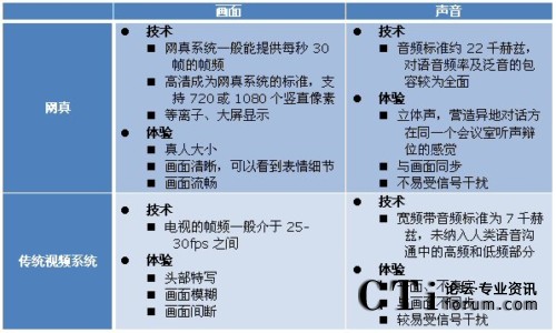 網(wǎng)真產(chǎn)品與企業(yè)的其他視覺溝通產(chǎn)品不同,不同于以軟件為基礎(chǔ)的視頻通信應用、電話視頻、以硬件為基礎(chǔ)的桌面視頻系統(tǒng)及群體視頻會議等各類傳統(tǒng)視頻系統(tǒng)。Frost