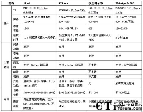 3、與專業(yè)電子閱讀器相比,iPad在瀏覽器、郵件、視頻等功能上具有獨特的優(yōu)勢,專業(yè)電子閱讀器目前只能滿足基本的閱讀和音樂的功能需求。同時在存儲能力、分辨力、感知方面,iPad也有較強的優(yōu)勢。