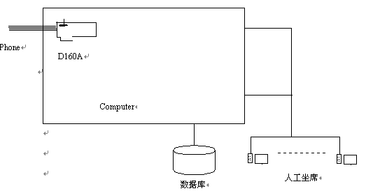 整個系統(tǒng)主要由CTI服務(wù)器(語音處理服務(wù)器)構(gòu)成,結(jié)構(gòu)圖如下;跂|進D160A的CTI服務(wù)器方便地實現(xiàn)了 呼叫排隊: 外線呼入時,將呼叫自動分配到空閑座席; 座席全忙時,將呼叫進行排隊,待座席空閑時,自動轉(zhuǎn)接。 自動語音提示:外線呼入時,自動播放提示語音"您好,歡迎使用XX 系統(tǒng)、自動服務(wù)請按0,人工服務(wù)請按1;如果選擇人工服務(wù),座席臺全忙時,放提示音"服務(wù)臺正忙,請稍候"。自動服務(wù):播放語音提示,指導(dǎo)客戶操作。顧客可以利用音頻按鍵輸入信息;根據(jù)客戶的音頻按鍵播放相應(yīng)的信息,或者進入下一級菜單。坐席服務(wù):外線撥入系統(tǒng)后,如果選擇人工服務(wù),系統(tǒng)將來話與臺內(nèi)座席接通。