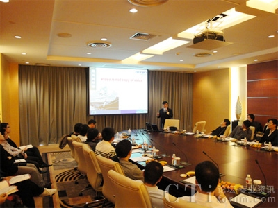 東進(jìn)Keygoe產(chǎn)品經(jīng)理劉駿先生是本次活動(dòng)當(dāng)之無愧的頂梁柱,活躍在沙龍活動(dòng)的每一站。他對(duì)3G通信市場進(jìn)行了深入淺出的分析,借鑒國外成功的案例經(jīng)驗(yàn),并對(duì)中國可能的熱點(diǎn)業(yè)務(wù)做出東進(jìn)的預(yù)測,即在將來,手機(jī)上網(wǎng),視頻點(diǎn)播,定位服務(wù)以及下載服務(wù)可能成為熱點(diǎn),同時(shí),重點(diǎn)列舉和分析了東進(jìn)在3G業(yè)務(wù)應(yīng)用的探索成果和經(jīng)驗(yàn)。會(huì)中對(duì)將視頻功能嵌入到“3G總機(jī)一號(hào)通”這類應(yīng)用的描述,非常引人入勝,尤其讓人注意的是,他認(rèn)為3G視頻在將來不會(huì)作為一個(gè)單獨(dú)的業(yè)務(wù)而存在,而公眾業(yè)務(wù)并沒有如預(yù)期般成為主流。此外,以國慶60周年閱兵空中梯隊(duì)現(xiàn)場指揮調(diào)度系統(tǒng)應(yīng)用為例,對(duì)行業(yè)呼叫中心的成功案例分享以及重點(diǎn)行業(yè)的前景預(yù)測分析也給客戶留下很深刻的印象。劉駿表示,對(duì)于正進(jìn)入新格局的市場,多媒體交換機(jī)正愈加凸顯其多媒體處理性能,并加速與其他通信系統(tǒng)的融合,而理解客戶的需求,成為重中之重。
