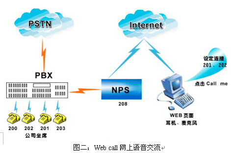 “無聲”一直是企業(yè)電子商務的最大遺憾,因為“無聲”,許多消費者卻步了。怎樣把語音和Web在網(wǎng)絡上結(jié)合起來?這正是星際網(wǎng)絡推出的web call系統(tǒng)(如圖二所示)的目標。消費者點擊點擊呼叫按鈕,就可以通過麥克風與客服代表通話。并且網(wǎng)上來電與普通來電一樣,經(jīng)過交換及排隊處理,同樣支持來電資料彈出。對客戶來說,只需要一臺接入Internet的多媒體電腦和免費的客戶端軟件就可實現(xiàn)Web瀏覽和交談功能。這個功能不僅可以讓客戶獲得更好的售后服務,在售前服務中也可以發(fā)揮巨大效用。家電產(chǎn)品的特性使得消費者在購買之前必須對產(chǎn)品有充分了解,在網(wǎng)站瀏覽中通過與客戶代表的交流增進產(chǎn)品了解,刺激其購買欲望。讓家電行業(yè)的網(wǎng)上商務的更有效。