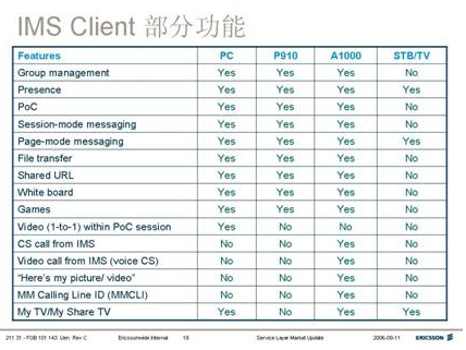 已經(jīng)實現(xiàn)的IMS業(yè)務有:組群管理,IPTV,IM即時消息,Push-to-talk POC,視頻會議,文件傳送,交互游戲,協(xié)同工作(白板應用)等等