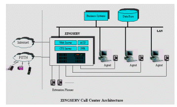 ZINGSERVò采用可靠性、安全性極高的嵌入式實(shí)時(shí)LINUX操作系統(tǒng)進(jìn)行開發(fā)。系統(tǒng)軟件采用客戶/服務(wù)器結(jié)構(gòu),服務(wù)器集ACD(技能組)、IVR、CTI