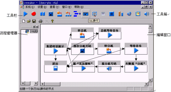 ZingServ標準版本中的IVR可以直接通過SQL語句存取Mysql,Oracle,Sybase和MSSQL Server這4種數(shù)據(jù)庫,并且可以通過變量一次對多條記錄中的多個字段進行操作。這種方式大大減少了二次開發(fā)的工作量,給集成商和最終用戶帶來了許多方便。