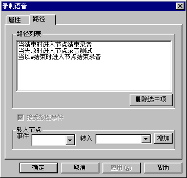 · 超時 // 例如,播放完語音后都要設(shè)置一段等待時間,在這段時間內(nèi)用戶沒有輸入觸發(fā)節(jié)點跳轉(zhuǎn)的按鍵,就被認為是超時。