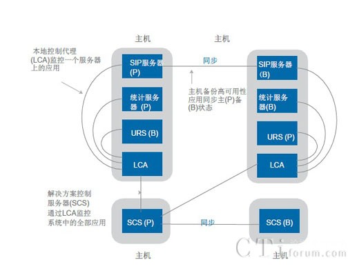 除了提供多個解決方案組件級的高可用性之外,高可用性功能也被融入到了管理框架中。圖4作為假設(shè)系統(tǒng)配置顯示了Genesys系統(tǒng)中高可用性管理的幾個重要方面。通過此類架構(gòu),解決方案控制服務(wù)器(SCS)管理著系統(tǒng)中所有Genesys組件的服務(wù)狀態(tài),包括啟動和停止組件以及管理它們的高可用性主/備狀態(tài)等。SCS與本地控制代理(LCA)的多個實例共同運行。每個物理主機上面都安裝有LCA的一個實例,用于在SCS與主機上面安裝的單個組件之間提供接口。
