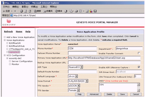 GVP提供了基于Web頁(yè)面的管理工具(VPM),通過(guò)VPM可以在遠(yuǎn)程對(duì)GVP的應(yīng)用進(jìn)行必要的配置,可以更改以及發(fā)布語(yǔ)音應(yīng)用,可以查看IVR端口實(shí)時(shí)的使用及通話(huà)狀態(tài),可以配置集成進(jìn)來(lái)的第三方語(yǔ)音產(chǎn)品等等。