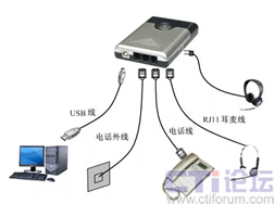 “話務通”設計新穎,接口包括電話線路接口、電話機接口、耳機接口和USB通信接口。配置立體聲揚聲器和環(huán)型提示燈,提供聲光提示!霸拕胀ā蹦軌蛱峁㊣P網(wǎng)絡電話,自動應答,自動外撥,來電彈屏,語音錄放,語音留言等功能。