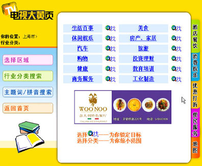 在上海IPTV提供的業(yè)務(wù)中,信息服務(wù)也是眾多用戶喜聞樂見的一項(xiàng)業(yè)務(wù),內(nèi)容覆蓋廣泛。它提供了時事、生活、娛樂、餐飲、健康、房產(chǎn)等信息,其中“時事”一欄呈現(xiàn)了新浪上海熱線實(shí)時傳遞的全球最新新聞資訊,讓老百姓“手握遙控器,便知天下事”,“健康”一欄更是一網(wǎng)打盡上海地區(qū)醫(yī)療機(jī)構(gòu)的信息資訊,特色?扑阉鳛橛脩籼峁┍憬莸尼t(yī)療信息服務(wù),“房產(chǎn)”中上海地區(qū)各類二手房產(chǎn)訊息一應(yīng)俱全,價格、地段、房型等應(yīng)有盡有。