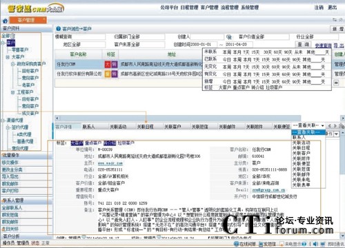 管理企業(yè)所有的目標(biāo)客戶和銷售員手中的意向客戶;知道銷售員與每個(gè)客戶的詳細(xì)進(jìn)展;幫助管理銷售員手中的重點(diǎn)客戶或快成交客戶;銷售員離職后客戶資料和他與客戶交往的所有記錄完整保留!