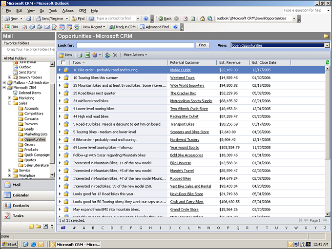 - 快速入門:使用熟悉的 Microsoft Office Outlook 2007 界面,員工無需學習新的應用程序即可管理客戶關系。