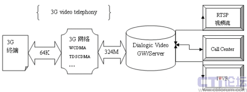 我們看,左側(cè)是3G手機,空中信道64基于TDM,右側(cè)是IP網(wǎng)掛業(yè)務(wù),包括呼叫中心、UC、流媒體服務(wù)器等,3G和IP網(wǎng)之間,需要有一個視頻網(wǎng)關(guān)(Video Gateway可以包括視頻媒體處理功能),將3G與IP流進行相互轉(zhuǎn)換,視頻網(wǎng)關(guān)技術(shù)很關(guān)鍵,涉及到很多環(huán)節(jié),要考慮,比如如何保證視頻播放的流暢,丟幀如何處理,如何將延遲降低到最低限度,壓縮和解壓是否更有效率,是否支持多種視頻編碼方式及它們相互之間的轉(zhuǎn)換,如何支持3G視頻會議的需求。 這里涉及到很多的算法的積累,和在實際網(wǎng)絡(luò)環(huán)境下的應(yīng)用經(jīng)驗。Dialogic公司可以提供滿足要求的產(chǎn)品。