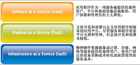 當(dāng)然,其它資源也可以通過服務(wù)的模式提供給用戶,比如CaaS,Communication as a Service通信即服務(wù),但我們通常把這些服務(wù)也規(guī)到以下三類當(dāng)中。