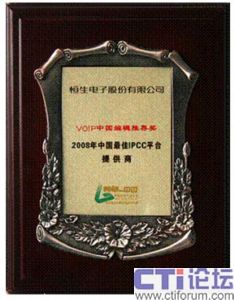 恒生及HSIPCC,已連獲多項(xiàng)殊榮: 2008年中國最佳呼叫中心“金耳嘜大獎”之“2008中國最佳呼叫中心年度技術(shù)產(chǎn)品獎”;2008年度全球IP通信大獎之“2008年中國最佳IP呼叫中心提供商”、VOIP中國網(wǎng)之“2008年中國最佳IPCC平臺提供商”、 中國惟一國家級呼叫中心行業(yè)協(xié)會CNCCA 之“2007年度中國最佳呼叫中心年度技術(shù)產(chǎn)品”獎等。
