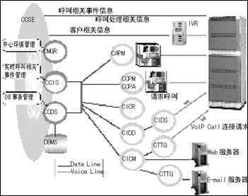 CTMP將Internet部分的呼叫控制緊密集成到傳統(tǒng)的CTI呼叫中心平臺(tái)中。Internet呼叫(VoIP、Chatting、E-mail、畫像通話)跟普通的電話呼叫一樣排隊(duì),并分配到人工坐席上面,呼叫中心管理者可以統(tǒng)一管理這些零散的信息。