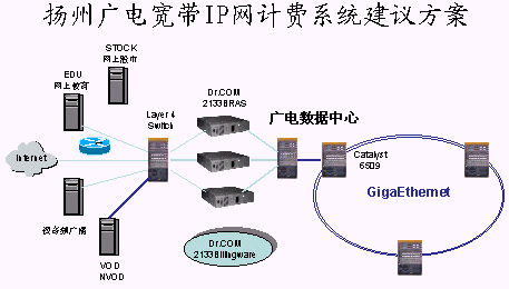 參與此次競標的廠家一共有三家,都是在國內(nèi)專門從事寬帶網(wǎng)絡管理與計費系統(tǒng)的。經(jīng)過多方的調查與研究,從產(chǎn)品的技術特性,到產(chǎn)品的價位,以及產(chǎn)品的售后技術支持,結合揚州局自身的特點,揚州有線臺最終選擇了北京城市熱點網(wǎng)絡技術有限公司的Dr.com2133寬帶運營計費管理系統(tǒng)。