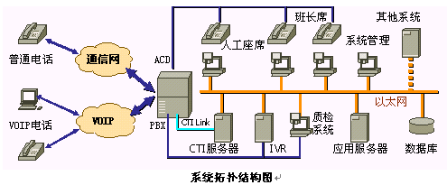 交換機(jī)實(shí)現(xiàn)電話呼入、呼出和話務(wù)管理等功能;提供自動(dòng)排隊(duì)機(jī)系統(tǒng),用于實(shí)現(xiàn)對(duì)來(lái)話的均衡分配;呼叫管理系統(tǒng),用于有效管理所有話務(wù);支持IVR;提供CTI