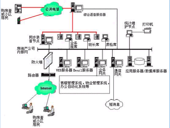 。。用戶利用電話、傳真、WEB、手機短信息、電子郵件等撥打某一特服號碼(如95xxx)進(jìn)入房地產(chǎn)多媒體客戶服務(wù)中心系統(tǒng),本系統(tǒng)依托房地產(chǎn)企業(yè)各類業(yè)務(wù)技術(shù)支持系統(tǒng),通過人工受理或自動語音服務(wù)等方式為各類客戶提供購房和物業(yè)管理服務(wù);形成了對外服務(wù)于客戶,對內(nèi)管理、分析、決策系統(tǒng)相結(jié)合的呼叫中心。