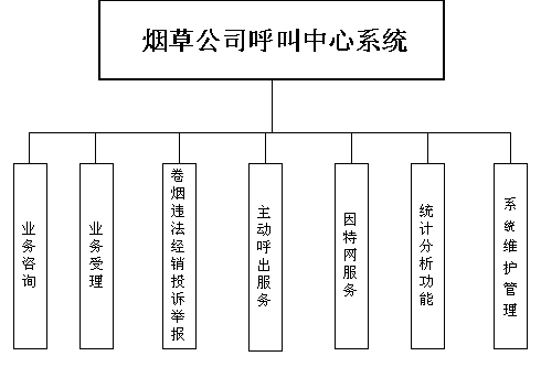 系統(tǒng)由一系列相對獨立而又緊密聯(lián)系的模塊軟件組成,集自動語音服務(wù)、自動留言服務(wù)、人工座席(煙草公司工作人員)服務(wù)、信息資料處理等于一體,提供了一套完整的煙草公司呼叫中心的解決方案。各個功能模塊之間即可獨立運行,也可自由組合進行工作,各煙草公司可以根據(jù)各自的特點靈活的進行模塊配置,為煙草公司量身定做。