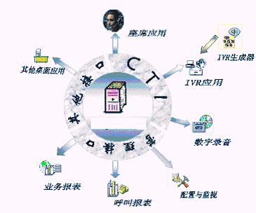 投訴建議,錄音留言,語音信箱管理,轉有關部門辦公電話,自動語音服務,人工座席服務,呼出服務等為一體的客戶服務軟硬件平臺,充分整合現(xiàn)有資源,建立起對現(xiàn)有計算機技術支持系統(tǒng)等業(yè)務系統(tǒng)的(如ERP系統(tǒng),售后服務系統(tǒng)等)數(shù)據(jù)加工、分析、再應用的汽車制造企業(yè)具有基本CRM功能的呼叫中心系統(tǒng)/客戶服務中心的一體化軟硬件CTI平臺。