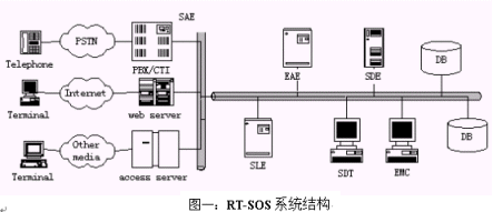 SAE完成接入服務(wù)器(Access Server)和RT-SOS后臺的通訊, 為每種接入方式設(shè)計(jì)接口程序, 實(shí)現(xiàn)了RT-SOS后臺業(yè)務(wù)處理與前臺接入方式無關(guān)。這里的接入服務(wù)器指網(wǎng)站服務(wù)器(IIS、Apache)、短信中心(SMS或者短信網(wǎng)關(guān))、程控交換機(jī)(或者CTI設(shè)備)等等。