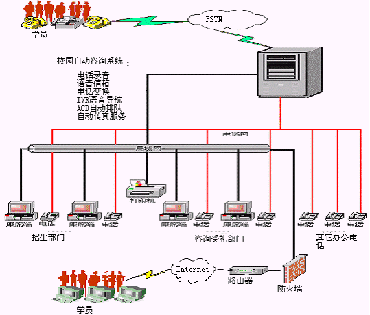 為了滿足廣大學(xué)員多樣化的培訓(xùn)需求,這些教育培訓(xùn)機(jī)構(gòu)紛紛借助于先進(jìn)的電子商務(wù)手段為培訓(xùn)服務(wù),以便更大程度的提高自身的服務(wù)質(zhì)量,留住和吸引更多的學(xué)員,從而創(chuàng)造更大的利潤.紐曼公司推出的教育培訓(xùn)機(jī)構(gòu)呼叫中心系統(tǒng)正是基于這種考慮。教育培訓(xùn)機(jī)構(gòu)呼叫中心系統(tǒng)集電話語音、計(jì)算機(jī)通信集成(CTI)、計(jì)算機(jī)網(wǎng)絡(luò)、數(shù)據(jù)庫等技術(shù)于一體,為各教育培訓(xùn)機(jī)構(gòu)開辟了一種新的服務(wù)窗口和服務(wù)渠道。