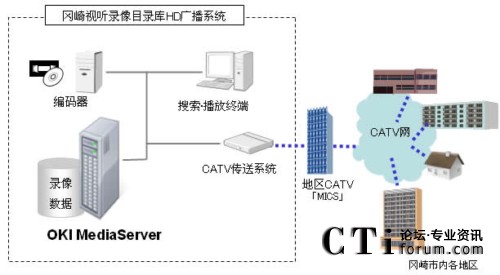 該系統(tǒng)以IP視頻傳輸系統(tǒng)“OKI MediaServer”為基礎(chǔ),是采用支持HD編碼裝置的錄像目錄庫(kù)系統(tǒng)。通過簡(jiǎn)單的GUI操作可以把編制成目錄的圖像制作成電視廣播節(jié)目并通過CATV電視臺(tái)播放。