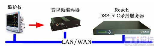 銳取遠(yuǎn)程醫(yī)療系統(tǒng)前端視音頻編碼器將采集到的手術(shù)室監(jiān)護(hù)儀的信號(hào)進(jìn)行實(shí)時(shí)編碼和壓縮,通過(guò)網(wǎng)絡(luò)傳送給銳取多媒體錄播系統(tǒng)遠(yuǎn)程醫(yī)療系統(tǒng)后臺(tái)服務(wù)器上。