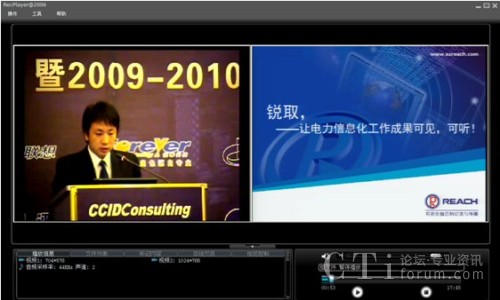 本次論壇分為電力企業(yè)信息化高峰論壇、電力企業(yè)“十二五”信息化藍圖展望、電力信息化標桿研究及評選結(jié)果發(fā)布、研討國際電力信息化標桿發(fā)展方向、研討“智能”落地打造中國智能特色五大議題。深圳銳取受主辦方委托為論壇提供全程錄播服務(wù)。相比傳統(tǒng)攝像機記錄會議的方式,銳取多媒體錄播系統(tǒng)實現(xiàn)了會議現(xiàn)場視頻與講演者PPT同步完整記錄,新穎的記錄方式受到了主辦單位和與會者的好評。