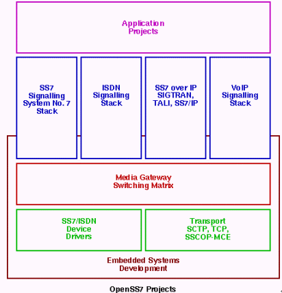 OpenSS7是由OpenSS7公司主導下開發(fā)的一個支持七號信令(SS7)和SIGTRAN的開源協(xié)議棧項目。該項目開始于1996年,它實現(xiàn)了ITU Q.700系列建議中的七號信令系統(tǒng)。隨著VOIP和軟交換的興起,OpenSS7的焦點集中在SIGTRAN協(xié)議的實現(xiàn)上(SIGTRAN可以看作是SS7的NGN版本)。其實,OpenSS7其實并不僅僅局限七號信令, ISDN和軟交換的一系列信令都在它的考慮范圍之內(nèi)。