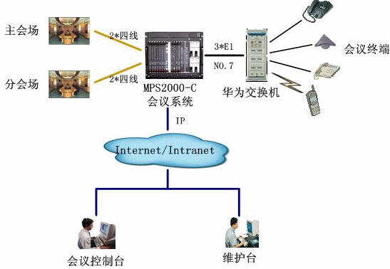 廊坊電力公司在2006年新配置了一套華為視頻會(huì)議系統(tǒng),為滿足國家電網(wǎng)公司對會(huì)議系統(tǒng) “一主兩備”的要求,公司急需一套電話會(huì)議系統(tǒng)作為視頻會(huì)議系統(tǒng)的應(yīng)急備份。廊坊電力公司相關(guān)專家經(jīng)過多方認(rèn)證,最終采用邁可行公司自主研發(fā)的MPS2000-C-II型交互式電話會(huì)議系統(tǒng)。