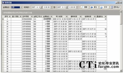系統(tǒng)提供統(tǒng)計報表生成工具,實現(xiàn)對系統(tǒng)訪問次數(shù)的統(tǒng)計與分析,并以圖示直觀地反映出用戶關(guān)注的熱點(diǎn)?砂粗鹘刑柎a、局向統(tǒng)計時長,并自動生成效果圖,直觀表現(xiàn)業(yè)務(wù)發(fā)展。還可根據(jù)主叫統(tǒng)計時長,當(dāng)天分析,本周分析,本月分析,提供時長走勢圖(可以以小時為單位分析時長的走勢,也可以以天為單位分析時長的走勢)