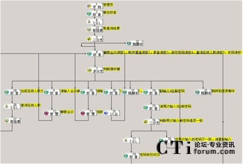 EasyCTI作為一個綜合的自動語音應(yīng)答平臺,用戶并不需要了解底層的實現(xiàn)原理、語音卡的硬件、軟件編寫等知識,而將精力完全放在具體的業(yè)務(wù)流程開發(fā)上即可。下圖為一個IVR語音流程示例:
