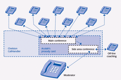 Chelston Call Systems 為RNIB 建立了基于CallHandler-720平臺(tái)、并附有錄音設(shè)施的會(huì)議橋。CallHandler-720是由Aculab Prosody DSP資源板卡集成的,采用開放的架構(gòu)并可通過萬維網(wǎng)進(jìn)行控制。