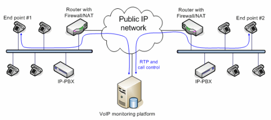 下圖說明的是主動式的VoIP監(jiān)控系統(tǒng)結構。路由器設備處于網(wǎng)絡Edge的位置。