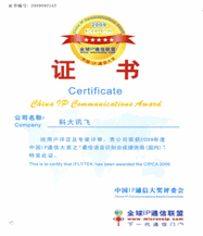 在CIPCA 2009中國IP通信大獎的評選活動中,科大訊飛憑借優(yōu)秀的企業(yè)形象和良好的市場口碑,以明顯優(yōu)勢在第一輪網(wǎng)上投票中脫穎而出;并在第二輪評選中得到了專家評委的一致認可:由140名業(yè)內(nèi)資深高管組成的評委會對科大訊飛給予了極高的評價。最終,科大訊飛以絕對優(yōu)勢,無可爭議的再次問鼎“中國IP通信最佳語音識別技術提供商(國內(nèi))獎”這一重大獎項。