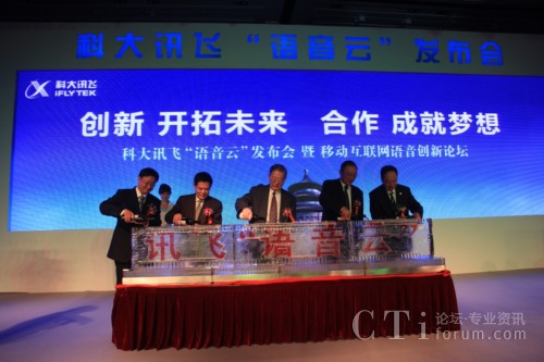 CTI論壇(ctiforum)10月29日消息(記者 潘婷婷): 2010年10月28日,“科大訊飛‘語音云’發(fā)布會暨移動互聯(lián)網(wǎng)語音創(chuàng)新論壇”在北京香格里拉飯店隆重舉行?拼笥嶏w作為中國語音產(chǎn)業(yè)領(lǐng)導(dǎo)者,在業(yè)界率先推出“訊飛語音云”,對于促進(jìn)國家新近確定的七大戰(zhàn)略新興產(chǎn)業(yè)之一的“新一代信息技術(shù)”發(fā)展具有重大意義,將推動移動互聯(lián)網(wǎng)邁入語音時代,創(chuàng)新無限豐富的應(yīng)用、創(chuàng)造廣闊的市場藍(lán)海。因此,此次發(fā)布會得到了各界的高度關(guān)注,各相關(guān)政府部門領(lǐng)導(dǎo),聯(lián)想、騰訊、愛國者、優(yōu)視科技、播思通訊等各行業(yè)及移動互聯(lián)網(wǎng)領(lǐng)軍企業(yè)的代表,媒體界朋友,匯聚一堂、共襄盛舉,并就移動互聯(lián)網(wǎng)與語音產(chǎn)業(yè)的相互融合、創(chuàng)新發(fā)展、合力共贏進(jìn)行了深入熱烈的探討。