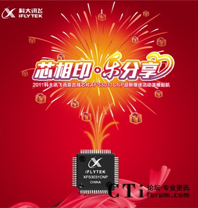 “芯” 相印,樂分享!為答謝并回饋廣大新老用戶,2011科大訊飛語音合成芯片XFS3031CNP迎新贈送活動(dòng)12月28日起溫暖起航!