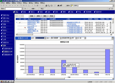 圖3下半部分的圖表是對(duì)上半部分的記錄進(jìn)行表現(xiàn);上半部分的記錄,是根據(jù)一定的條件篩選出來的。在圖表中,可以選擇一些常用的參數(shù),如是全部公司的、還是某個(gè)分支機(jī)構(gòu)的、還是某個(gè)銷售代表的……