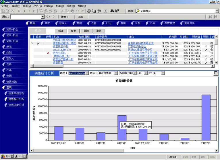 (1) 基于機(jī)會(huì)的"銷售分析統(tǒng)計(jì)圖表"