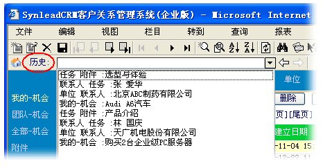 比起后退、前進(jìn)按鈕,SynleadCRM“歷史”對(duì)話框在滿足實(shí)際業(yè)務(wù)需求及人本化方面又上臺(tái)階。
